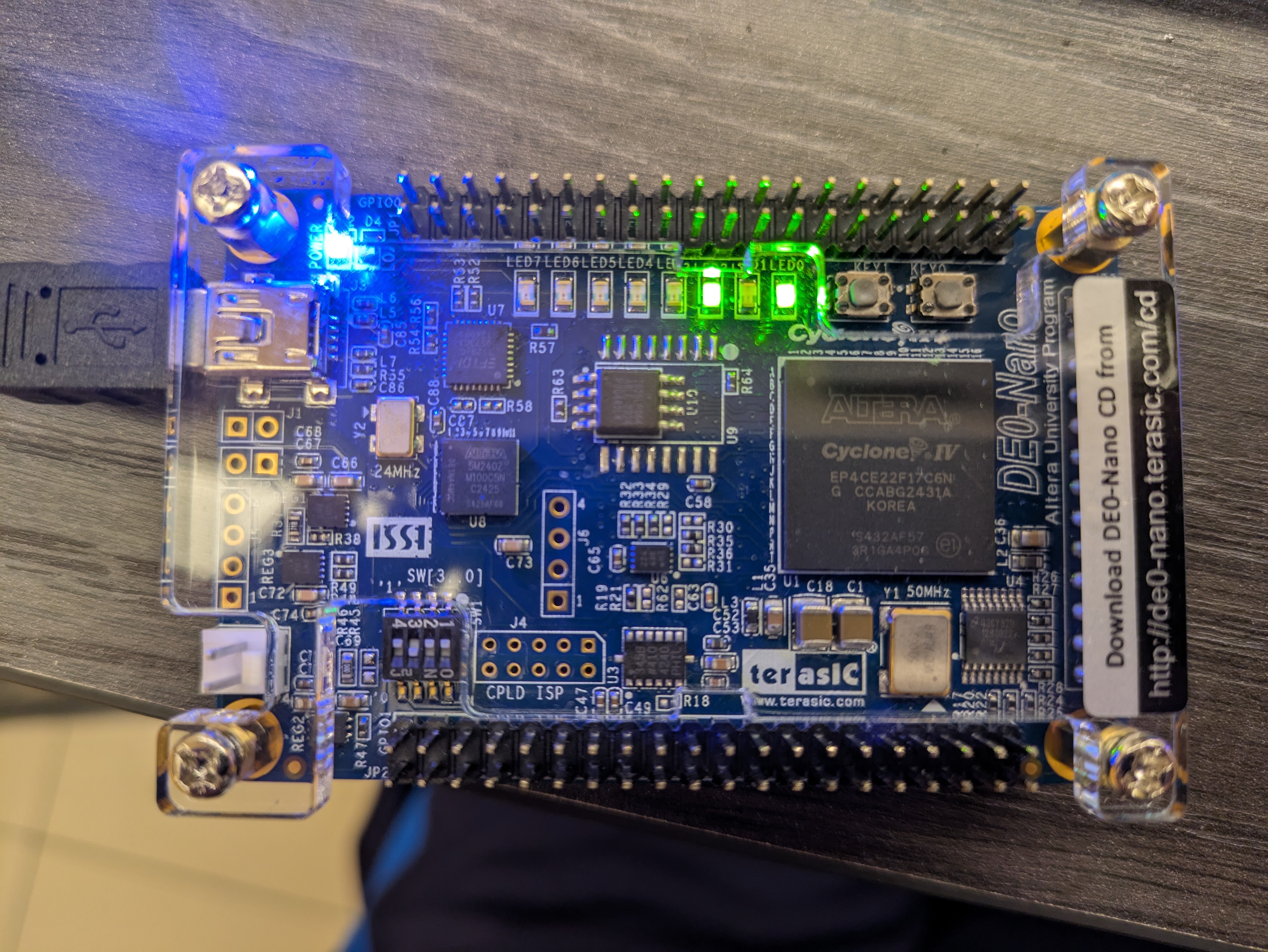 - Device: Intel/Altera Cyclone IV (EP4CE22F17C6, 22K LEs)