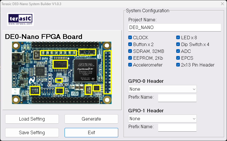 我使用的是 Terasic DE0-Nano。推薦使用官方提供的 DE0-Nano System Builder 來快速生成 .qsf 約束文件,省去手動分配 Pin 腳的麻煩。