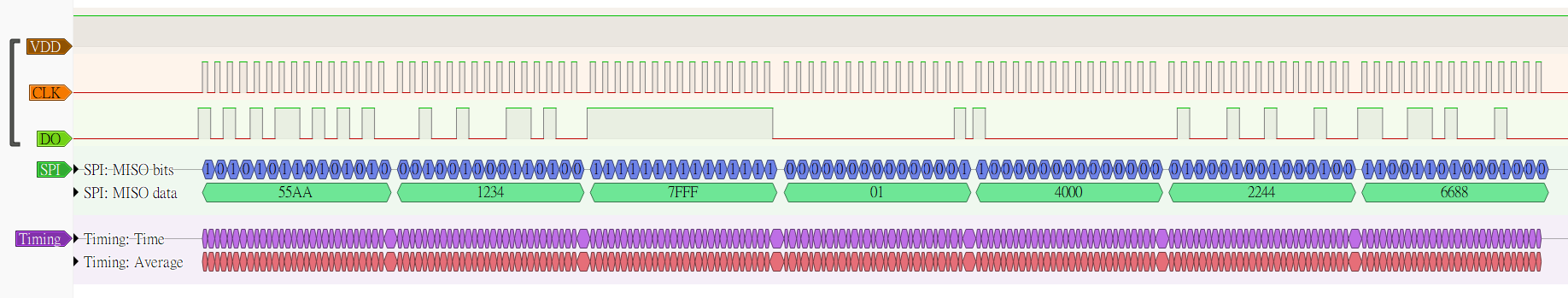 使用邏輯分析儀觀察到的 CLOCK 和 DATA 波型如下所示: