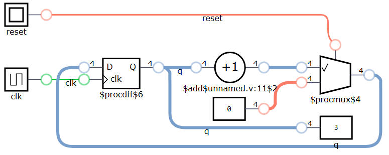Build a 4-bit binary counter that counts from 0 through 15, inclusive, with a period of 16. The reset input is synchronous, and should reset the counter to 0.