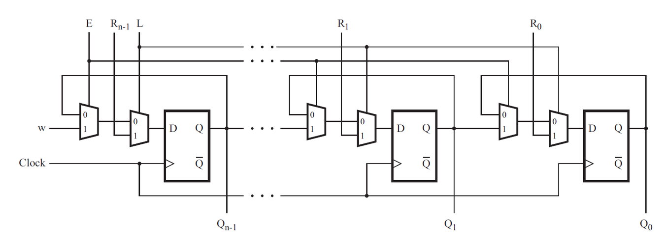 此 Shift Register 可視作一個簡化版的 Universal Shift Register. 結合了 並列載入 (Parallel Load), 右移, 保持資料 (Hold) 功能。