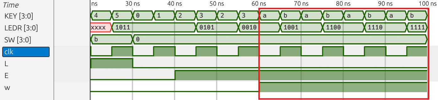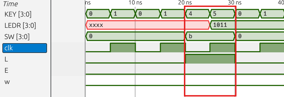 if (LEDR !== 4'b1011) $display("Error: Hold failed. Expected 1011, got %b", LEDR);